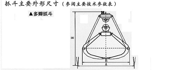 雙案多瓣抓斗(即荷花抓斗),吃料較深,可抓取顆粒較大的散貨,通常為廢鋼、煤炭、礦石等。